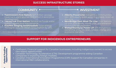 Success Infrastructure Stories showcases how Indigenous communities are driving economic growth through strategic infrastructure investments, equity participation in major energy projects, and targeted support for Indigenous entrepreneurs, highlighting real-world examples of community development, clean energy leadership, and expanded access to national and international business opportunities.